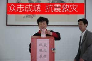 5月12日,四川汶川發(fā)生7.8級大地震。消息傳來后,工貿(mào)公司全體員工非常關(guān)注,災(zāi)情牽動著每一個人的心。14日上午,公司領(lǐng)導(dǎo)班子研究后,決定結(jié)合全市正在開展的“博愛在行動、人道萬人捐”活動發(fā)出倡議:一是倡議全體員工每人捐助一筆善款賑災(zāi);二是鼓勵身體健康的年輕同志自愿獻(xiàn)血。倡議發(fā)出后,公司領(lǐng)導(dǎo)帶頭捐款,各部門員工紛紛慷慨解囊,短短半個小時,就收到了40名員工捐款合計7600元,有8名同志報名參與集體獻(xiàn)血。大家紛紛表達(dá)了為災(zāi)區(qū)人民獻(xiàn)出一份愛心、一點(diǎn)力量的心意,同時表示將立足本崗、勤奮工作,以圓滿完成本職工作的實(shí)際行動,支援抗震救災(zāi)。 公司還通過短信平臺向所屬投資企業(yè)發(fā)出緊急倡議,號召各企業(yè)發(fā)揚(yáng)人道主義精神,緊急支援災(zāi)區(qū)同胞。目前,工貿(mào)系統(tǒng)企業(yè)正積極組織廣大職工參與捐款,形成一股抗震救災(zāi)、愛心捐贈的暖流。